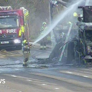 M25 closed in both directions near Potters Bar as lorry bursts into flames