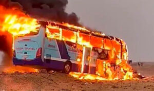 Egypt: 10 people killed as bus full of tourists bursts into flames after colliding with truck