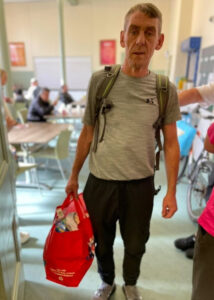 It’s a sunny morning in Birkenhead and John is eating for the first time in several days. He recently came out of hospital after suffering a double heart attack.