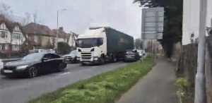 Watch as car whizzes wrong way down busy London A-road
