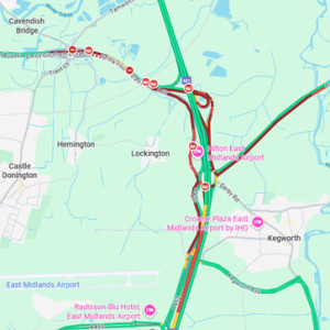 Google’s traffic maps are showing heavy delays around junction 24 of the M1 following a lorry crash on the A50. On the east of the M1, the A453 Remembrance Way and Derby Road towards Kegworth are heavily congested…