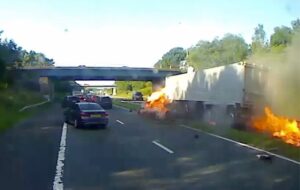 An HGV driver has been jailed for eight years and 10 months today after he killed three people in a 58mph ‘fireball’ crash while trawling an adult site on his phone.