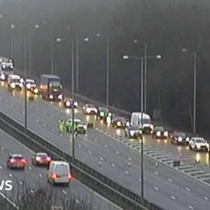 M1 delays after cattle truck overturns and car fire