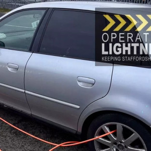 Officers from Staffordshire Police[1] have arrested two men on suspicion of vehicle crime offences after they were spotted on CCTV slashing open the back of lorries at the M6 services in Stafford.