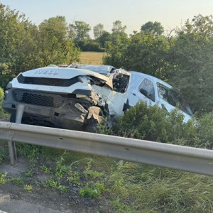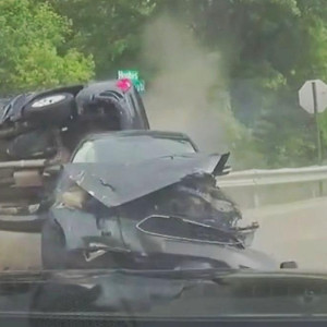 A van appears to have crashed into the central reservation on the M62 and ended up on top of another car on the westbound c…