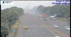 Five fire engines were needed to tackle a lorry that was engulfed in flames on the M25 this morning (August 10).The motorway was brought to a standstill at around 6.40am near junction 19 for Watford.